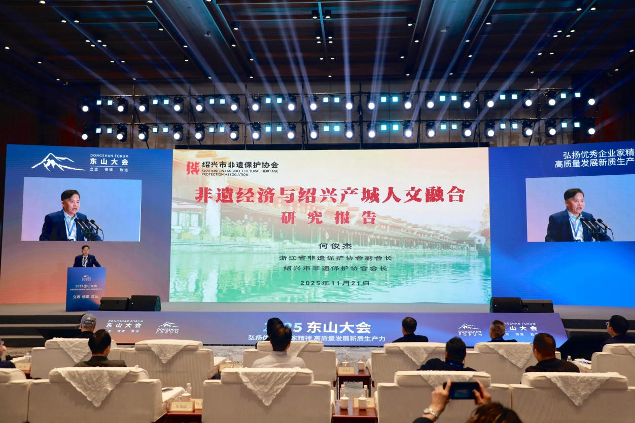 浙江省非遗保护协会副会长、绍兴市非遗保护协会会长何俊杰表示:非遗经济是新质生产力的重要组成部分,此次大会中,绍兴市非遗保护协会通过主导议程设计、培育实践基地、搭建交流平台等系列举措,充分展现了其在非遗传承创新与产业融合中的引领作用。未来,非遗协会将持续发挥桥梁纽带作用,推动传统文化与现代产业深度融合,为区域经济高质量发展与文化自信提升筑牢根基。(韩斐/文 2025东山大会组委会/供图)
