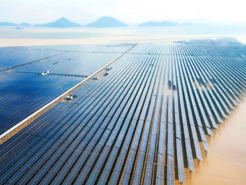 远眺浙江省台州市三门县健跳镇东部海域,规整的光伏阵列沿着海湾徐徐展开,在阳光下折射出一片蓝色科技矩阵;光伏板下,核电温排水在海底静静流淌。当前,这片波光粼粼的“光伏海”已铺设架设完成77%,迎来项目最后攻坚阶段。