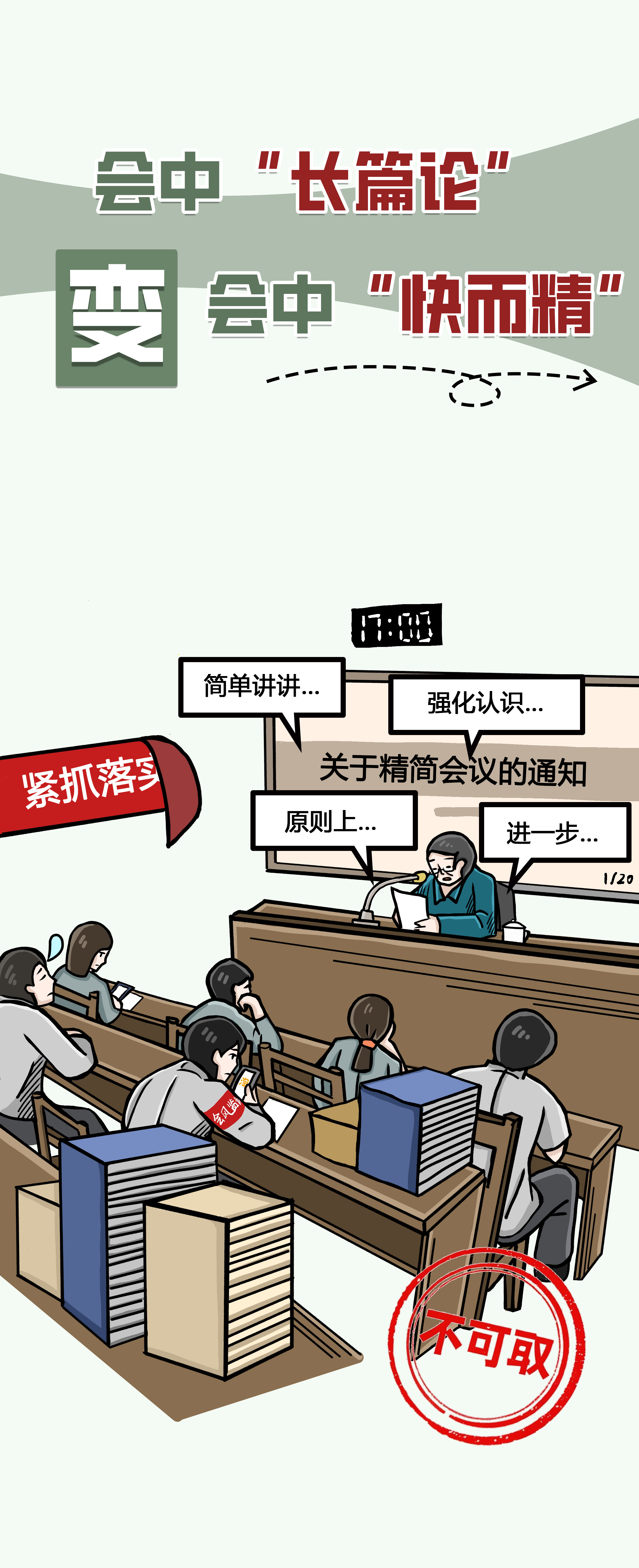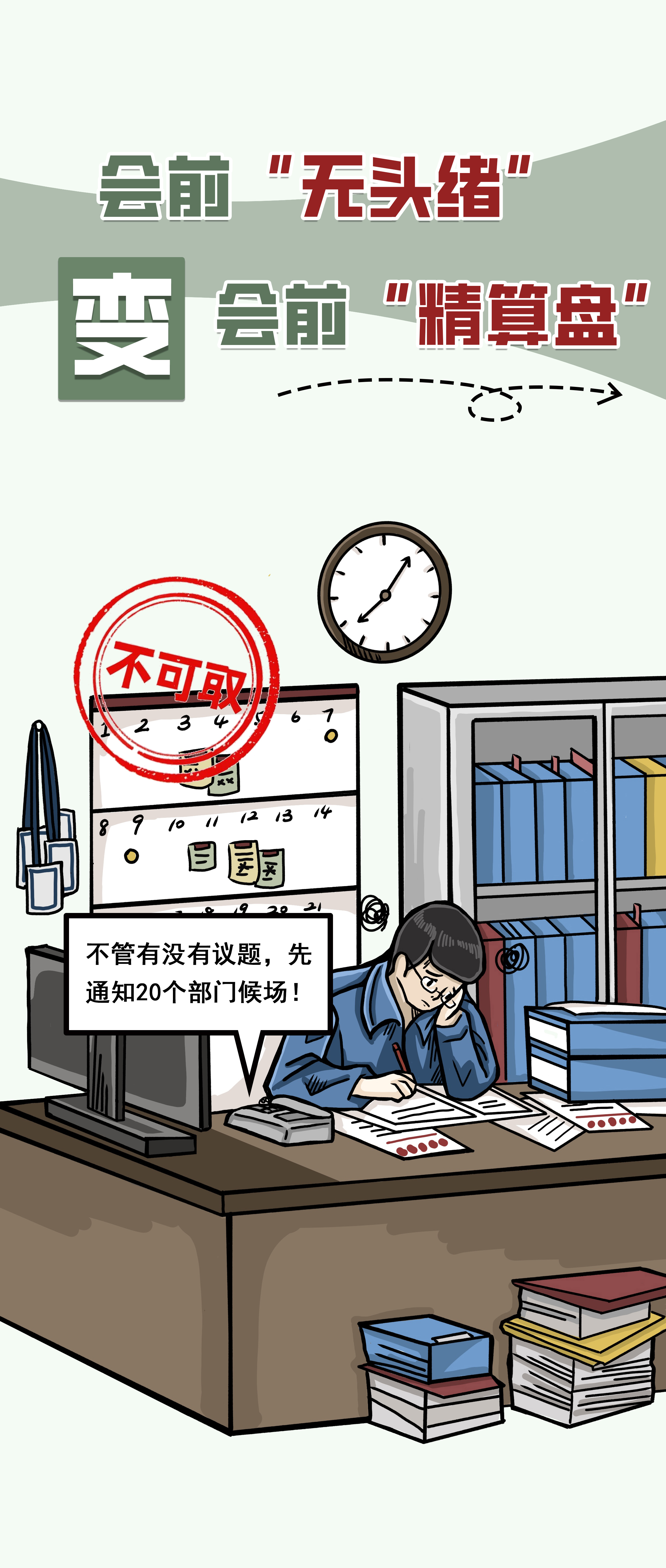 会风折射出作风,务实会风是良好作风的生动体现。会议举办过程中都有哪些“不可取”行为?正确做法又该如何?漫画寓教于乐,引导党员干部把好会风转化为好作风,以实际行动锲而不舍落实中央八项规定精神,推进作风建设常态化长效化。(施柯沁 朱明子 寿烨冉 吕彬/文 绍兴市柯桥区委组织部/供图)
