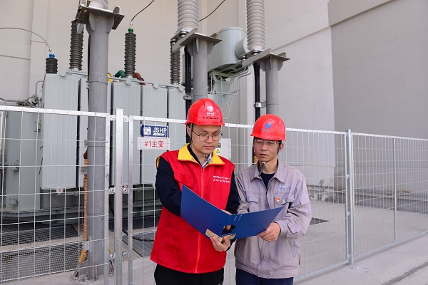 近日,国网嘉兴供电公司工作人员来到浙江桐乡聚能启泰储能科技有限公司对110千伏桐聚变输变电工程开展设备检查工作。
