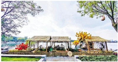 其中,“双生花语·宋韵流芳”获得室外景点竞赛最佳综合奖,作品以并蒂双生花与花展主题花卉菊花相呼应,通过立体花坛和小品相结合的手法,让千年宋韵在方寸景致中自然流淌;“东篱菊影伴竹吟”获得标准展台竞赛大奖。作品融入陶渊明“采菊东篱下”元素,通过秋菊与竹的意象交织,勾勒出超然物外的隐逸情怀。