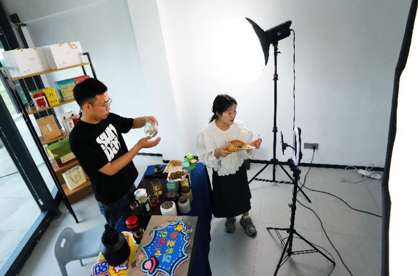 2025年5月,青年创客在遂昌进行农产品直播。新华网发(章建辉 摄)