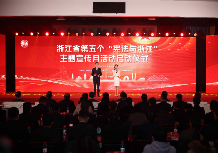 12月4日,在第十二个国家宪法日到来之际,浙江省第五个“宪法与浙江”主题宣传月活动启动仪式在杭州举行。此次宣传月主题是“学习宣传贯彻习近平法治思想,推动宪法深入人心”。