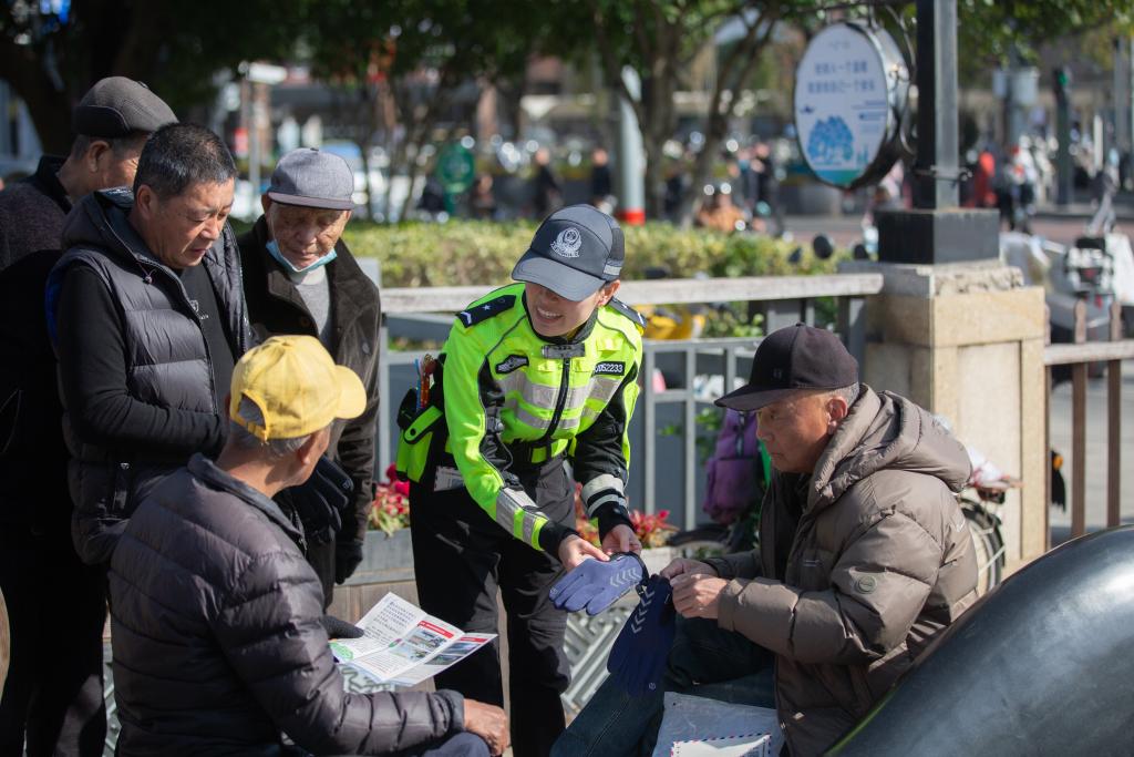 12月2日,温州交警向市民宣传电动自行车安全骑行知识,防范“开门杀”等事故。(温州公安供图)