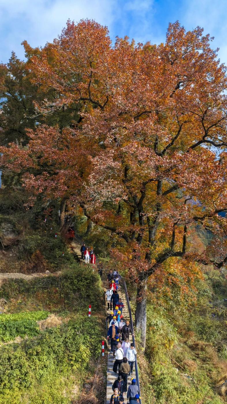 当前,文成县红枫古道正以最绚烂的姿态绽放光彩,红叶似火、游人如织,这份独有的秋日“枫”情,正静待更多游客前来探寻打卡。(毛慧楠 雷成/文 朱伟 陈轩/图)