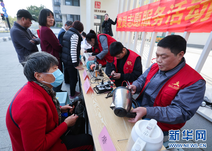 12月11日,浙江省嘉兴市南湖区南湖社区联合96345党员志愿服务中心组织开展党员志愿服务市集活动,党员志愿者为居民开展义诊、义剪、免费修理小家电等服务。