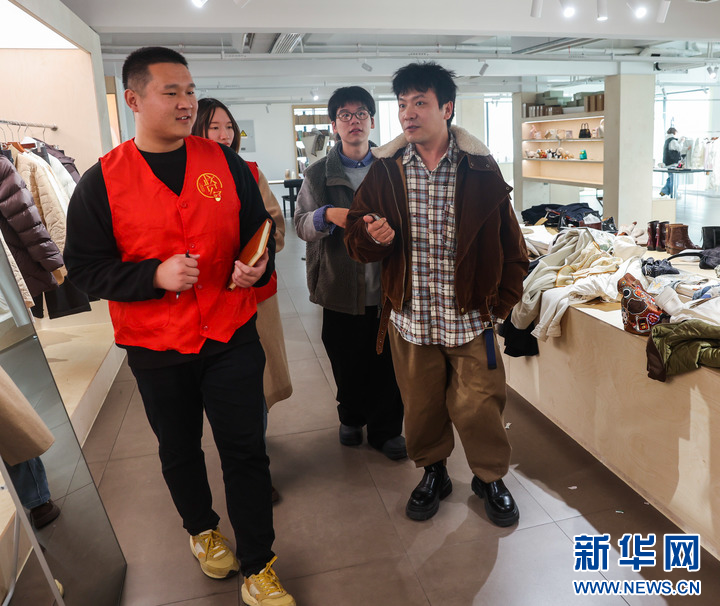 12月11日,在浙江省嘉兴市南湖区东栅街道的电商产业园区内,党员志愿者进行入企服务。