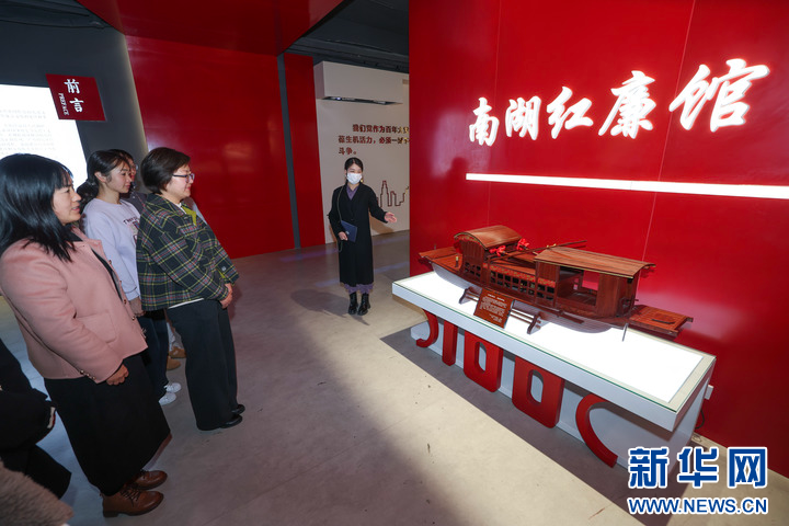 12月11日,在浙江省嘉兴市南湖区红廉馆内,东栅街道文贤社区党员干部开展廉政教育主题党日活动。