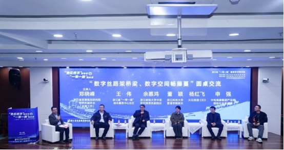 圆桌交流研讨环节,浙江省“一带一路”综合服务中心主任王伟、浙江财经大学中亚研究院常务副院长余慕鸿、浙江科技大学管理学院院长董颖、火石创造CEO杨红飞、中电海康集团产业部国际化业务经理申强等围绕“数字丝路架桥梁、数字空间畅藤蔓”主题,讨论在“地瓜经济”新特征、新变化下,如何发挥浙江优势,更好参与数字丝绸之路建设,助力企业推动数字产品、数字服务、数字技术等“走出去”。