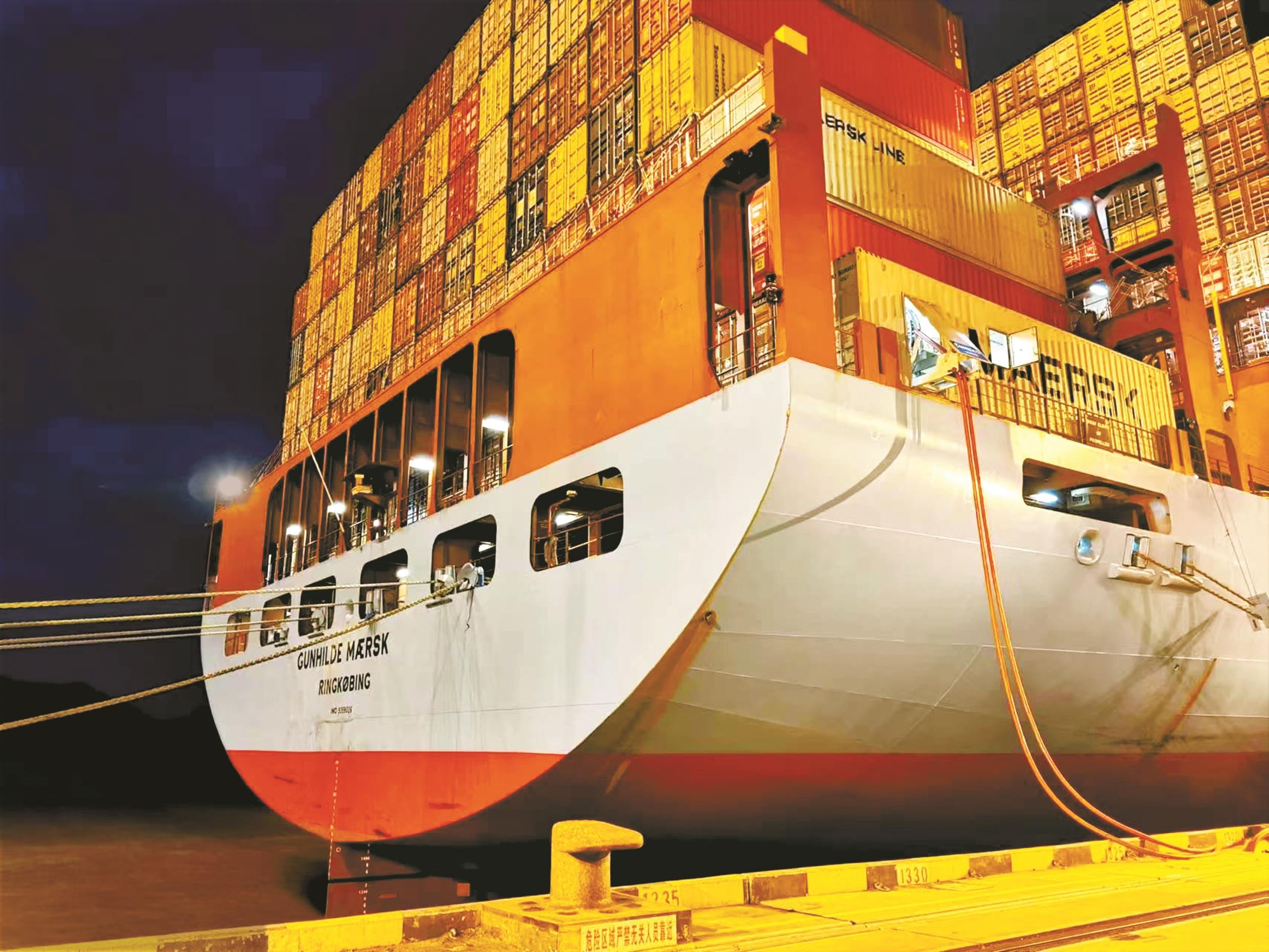 宁波舟山港梅东公司为马士基旗下的集装箱班轮进行高压供电。 (通讯员供图)