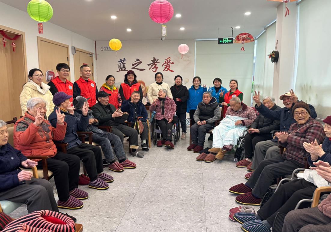 城兴社区慈善义工向街道为老服务中心老人送上新做的棉鞋。