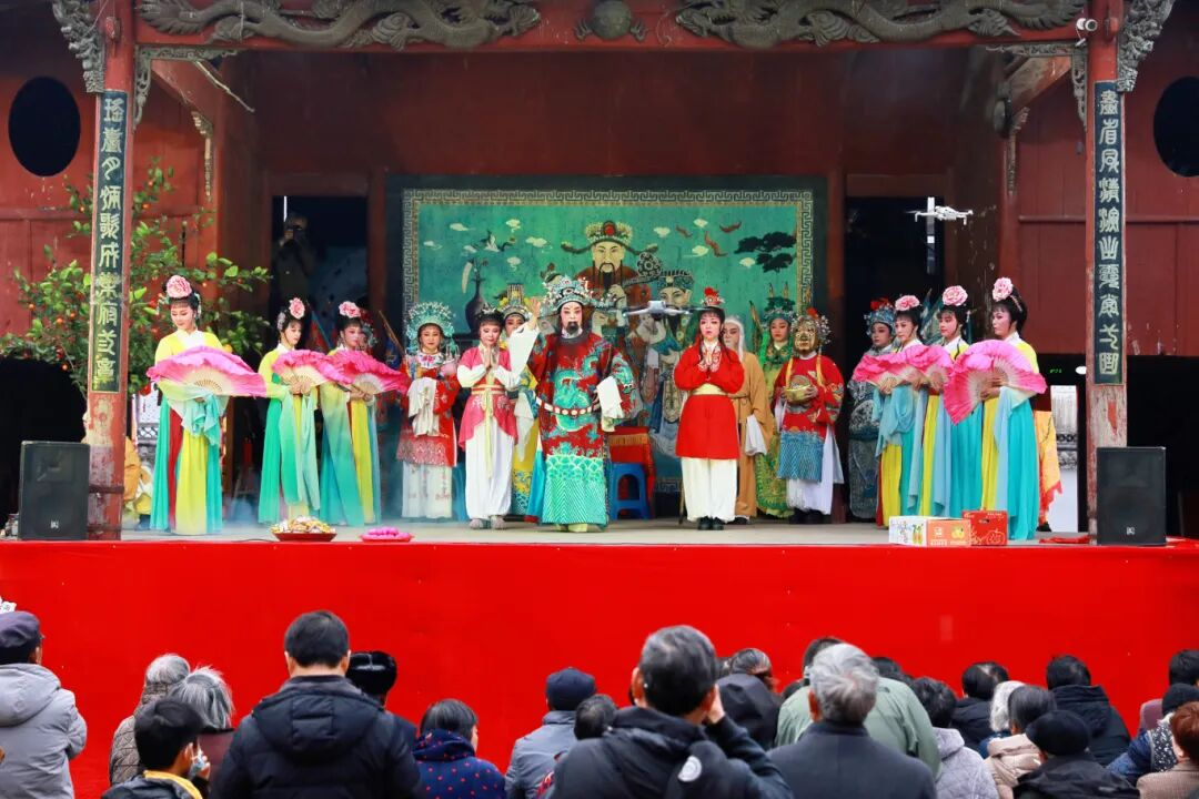 与此同时,金叶村则以一派欢腾景象呼应着祭冬主题。喧天的锣鼓声中,金叶村大鼓队、腰鼓队、舞狮队轮番上场,献上气势磅礴、生动活泼的精彩表演。经典的祝寿戏也随之开演,铿锵的鼓点、灵动的狮舞、韵味十足的唱腔,引得现场观众掌声不断,大家在热闹喜庆的氛围中,共同表达对来年幸福生活的美好期盼与喝彩。