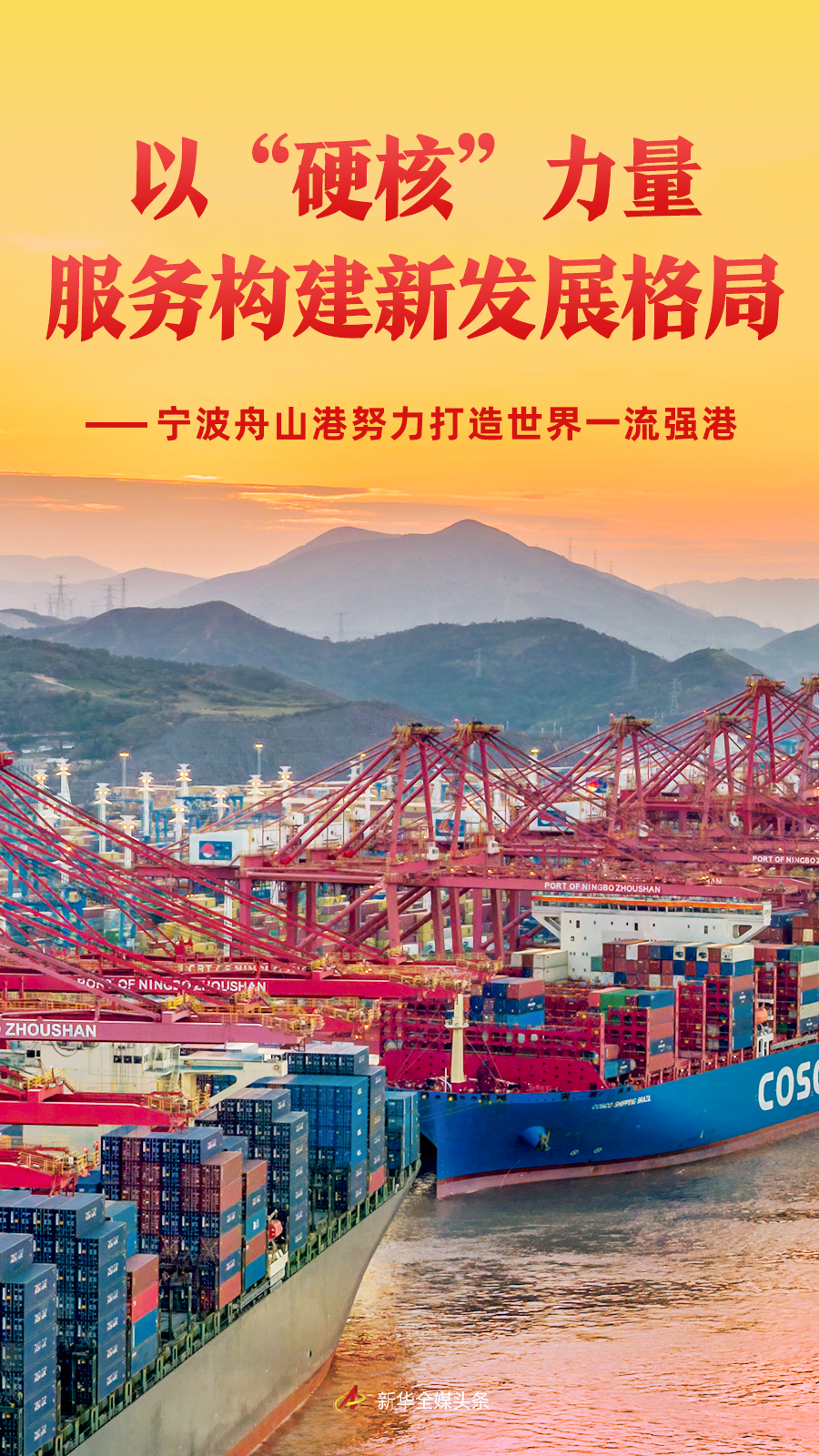 锚定建设世界一流强港目标,科学规划为未来描绘更加宏阔和清晰的发展蓝图。2023年,《浙江省世界一流强港建设工程实施方案(2023—2027年)》发布,明确“2027年基本建成世界一流强港”目标;去年10月批复的《宁波舟山港总体规划(2035年)》,进一步优化了港口功能布局与资源配置,助推宁波舟山港加快向强港建设目标迈进。