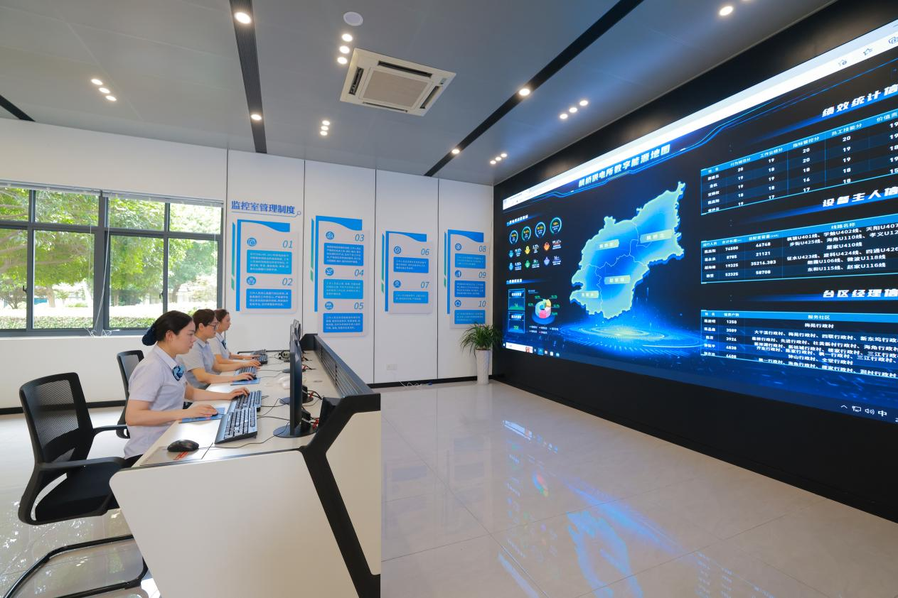 在绍兴枫桥供电所智能监控室,供电员工通过电力大数据实时监控,提前发现电网异常情况。王列刚 摄