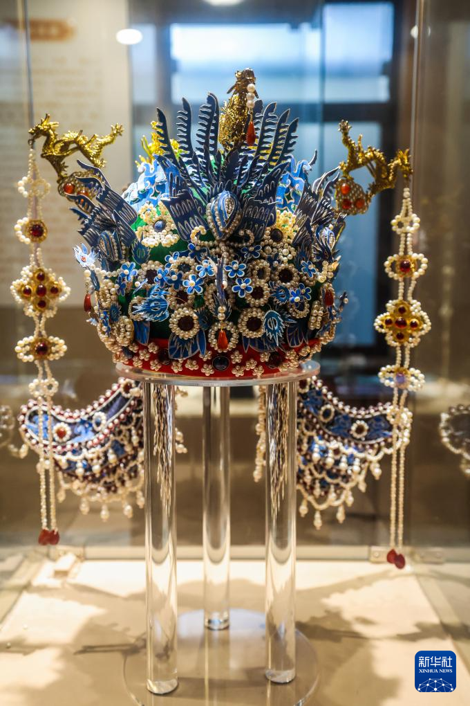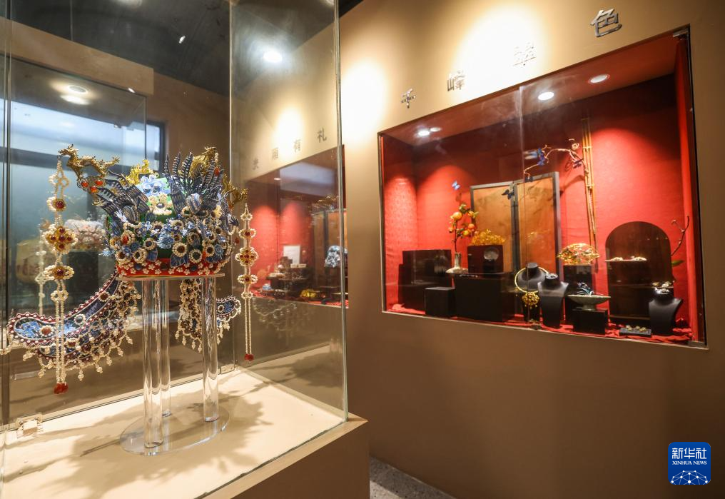 12月24日,这是位于匡堰镇倡隆村的楝树下艺术村落的花丝镶嵌非遗工坊的展厅内展示的六龙三凤冠。