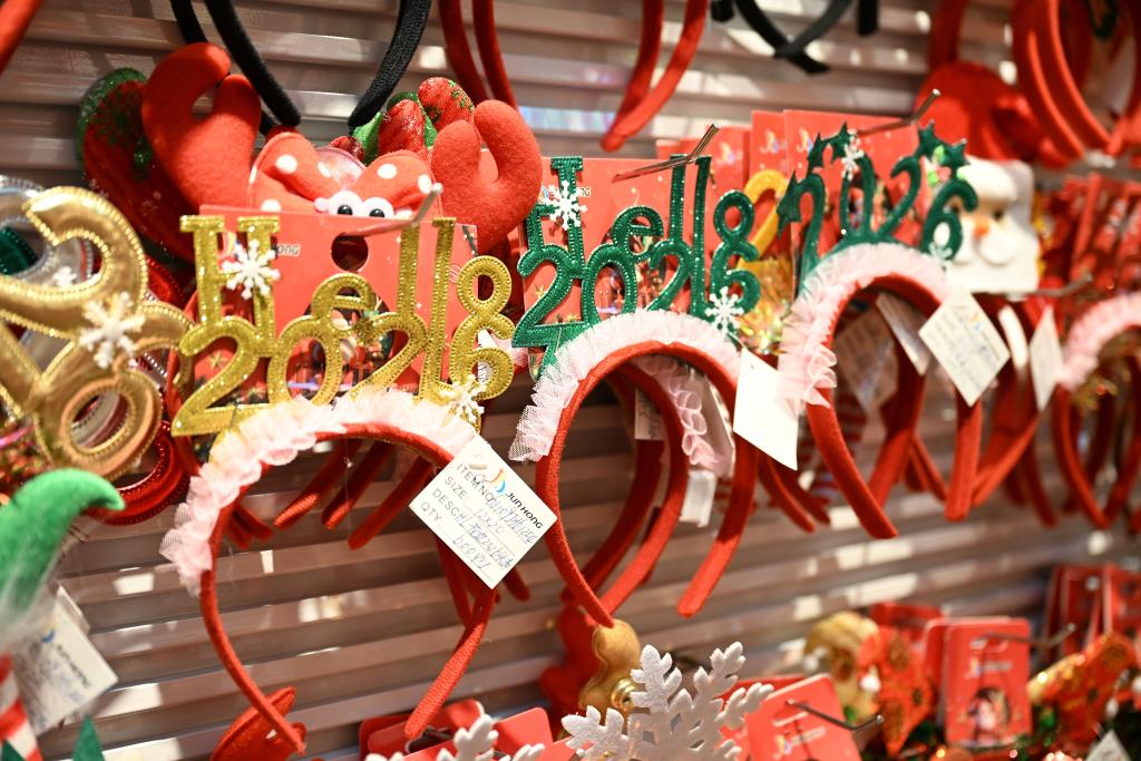 这是12月17日在浙江义乌国际商贸城拍摄的带有“Hello 2026”装饰的发箍。新华社记者 刘澈 摄