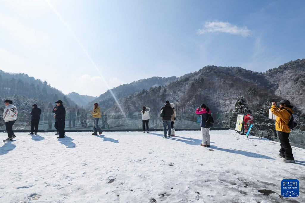 近日,受冷空气影响,浙江省杭州市临安区大明山景区迎来降雪,呈现出银装素裹的冬日美景,吸引各地游客前来赏雪、玩雪。