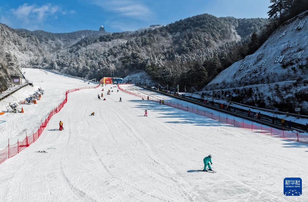 12月25日,游客在大明山万松岭滑雪场滑雪(无人机照片)。