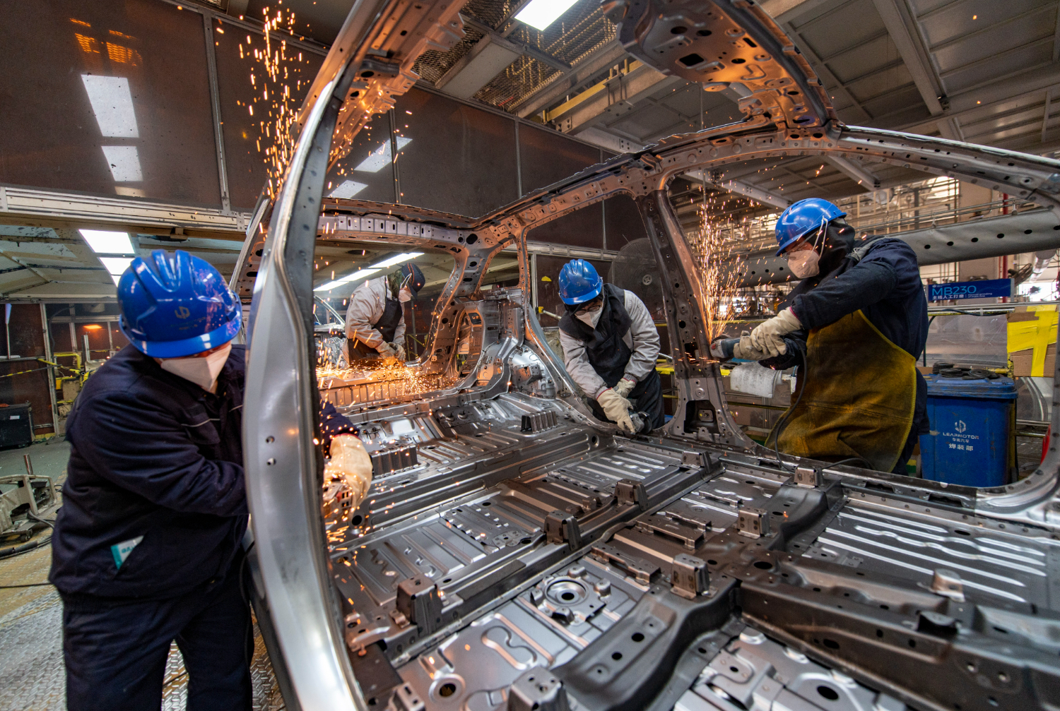 金华市新能源汽车小镇零跑汽车有限公司车间里,智能化新能源汽车生产线一片忙碌