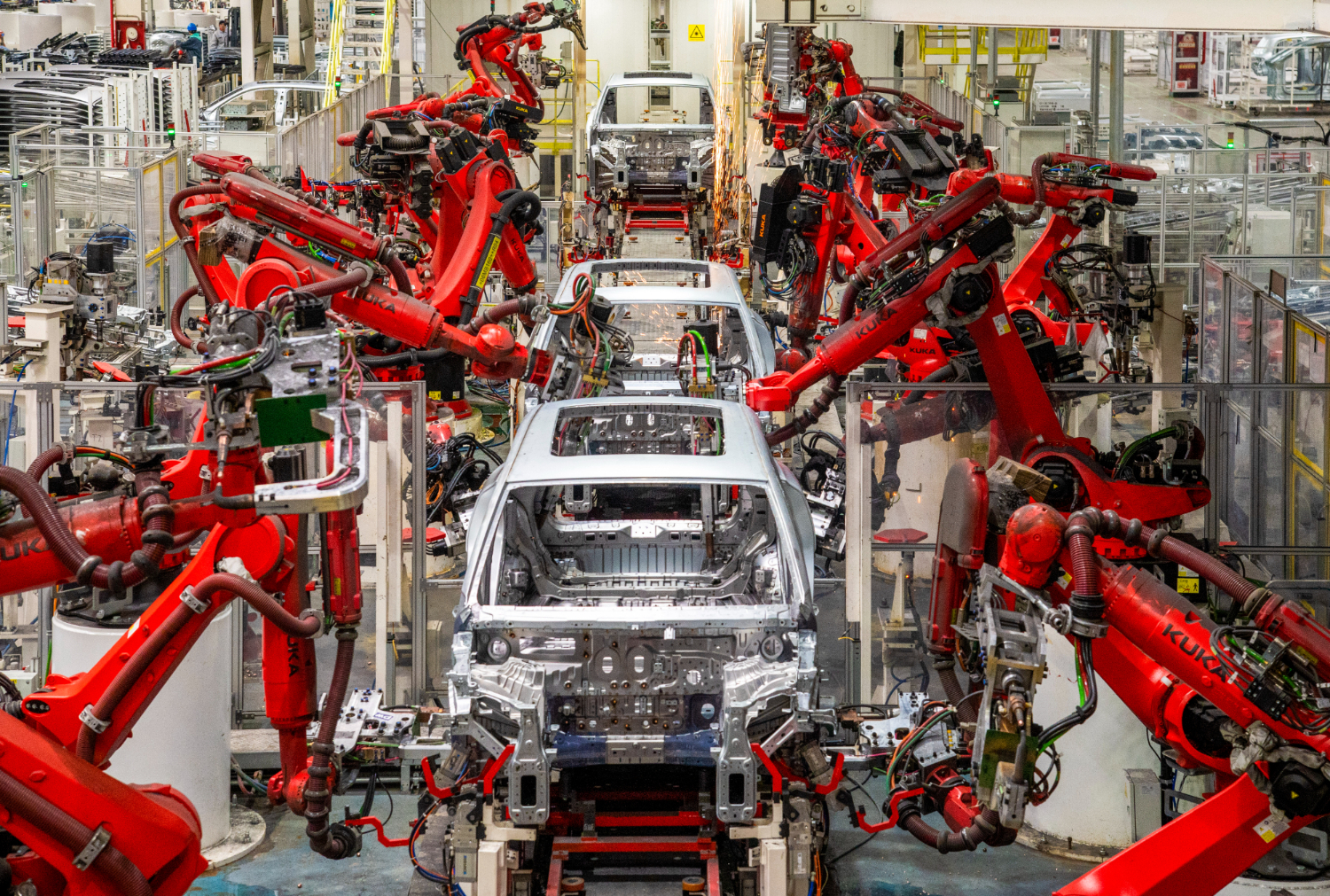金华市新能源汽车小镇零跑汽车有限公司车间里,智能化新能源汽车生产线一片忙碌
