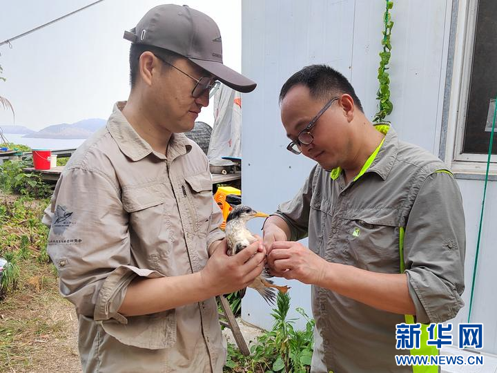 研究团队正在给燕鸥幼鸟佩戴环志。(受访者供图)