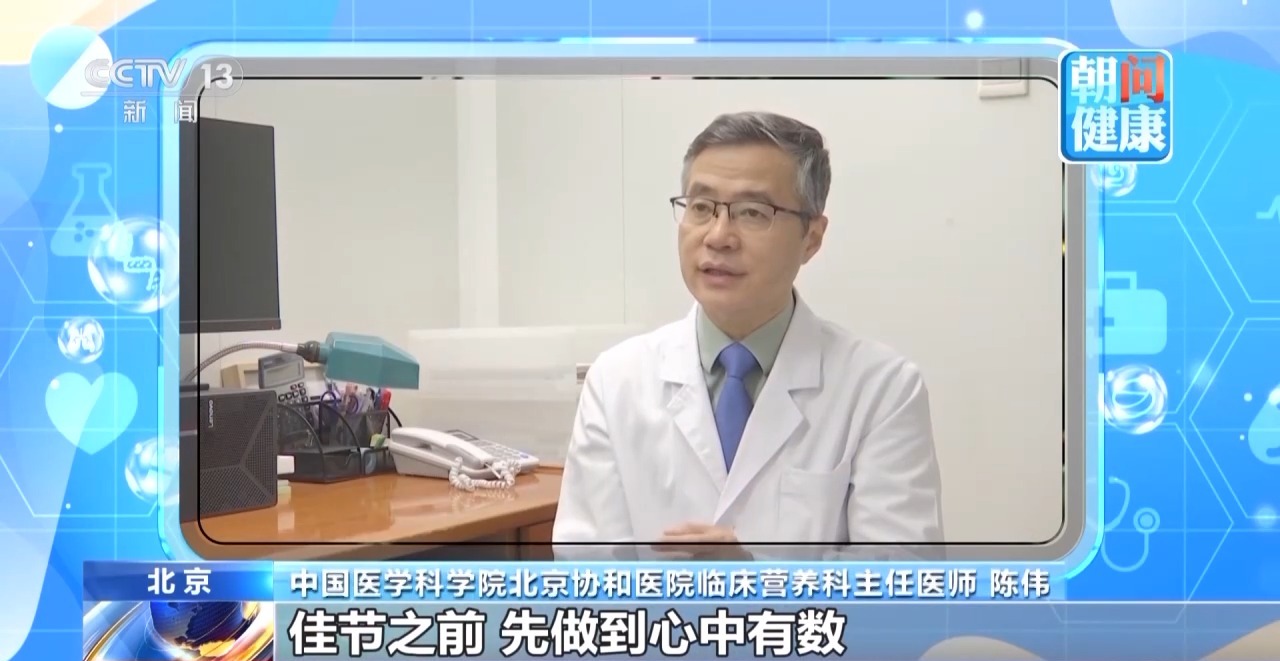 中国医学科学院北京协和医院临床营养科主任医师 陈伟:佳节之前,先做到心中有数,为了维持自己的体重,该吃多少,中午吃多了,晚上少吃;晚上吃多了,让自己多活动,尽量消耗吃进肚里的食物。