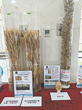 高产抗赤霉病小麦和“东生118”大豆。
