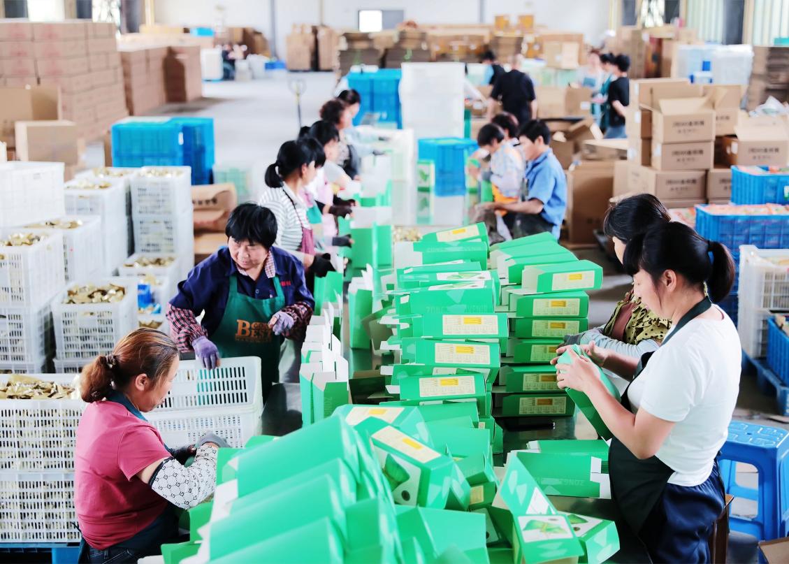 “要是出门打工,一年到头也回不了几次家。现在家门口上班,不仅能多挣几万元,还能照顾老人孩子,我觉得很开心。”正在打包番薯条的员工张小琴满脸笑容地说。当下,像张小琴这样在蔓果食品“共富工坊”的务工人员就有近80人,人均月工资超5000元。