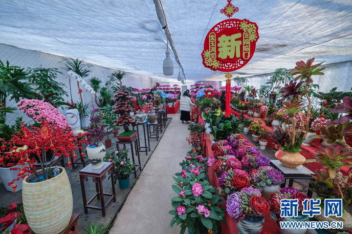 1月8日,澧浦花木城内年宵花卉色彩缤纷。