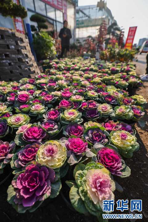 这是澧浦花木城一商户门口展示的羽衣甘蓝盆景(1月8日摄)。