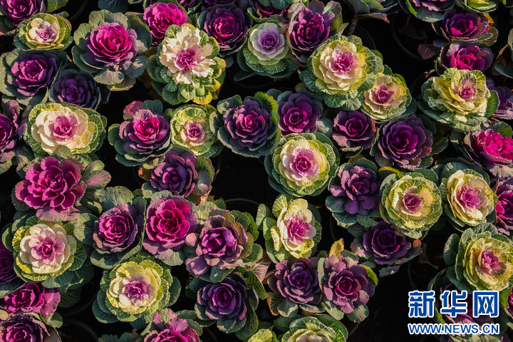 1月8日在澧浦花木城内拍摄的羽衣甘蓝盆景。