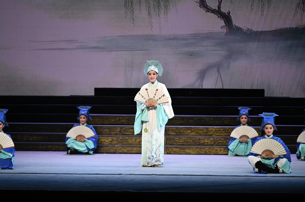 浙江小百花越剧院演员陈丽君在晚会上饰演“梁山伯”。(浙江省文化广电和旅游厅供图)