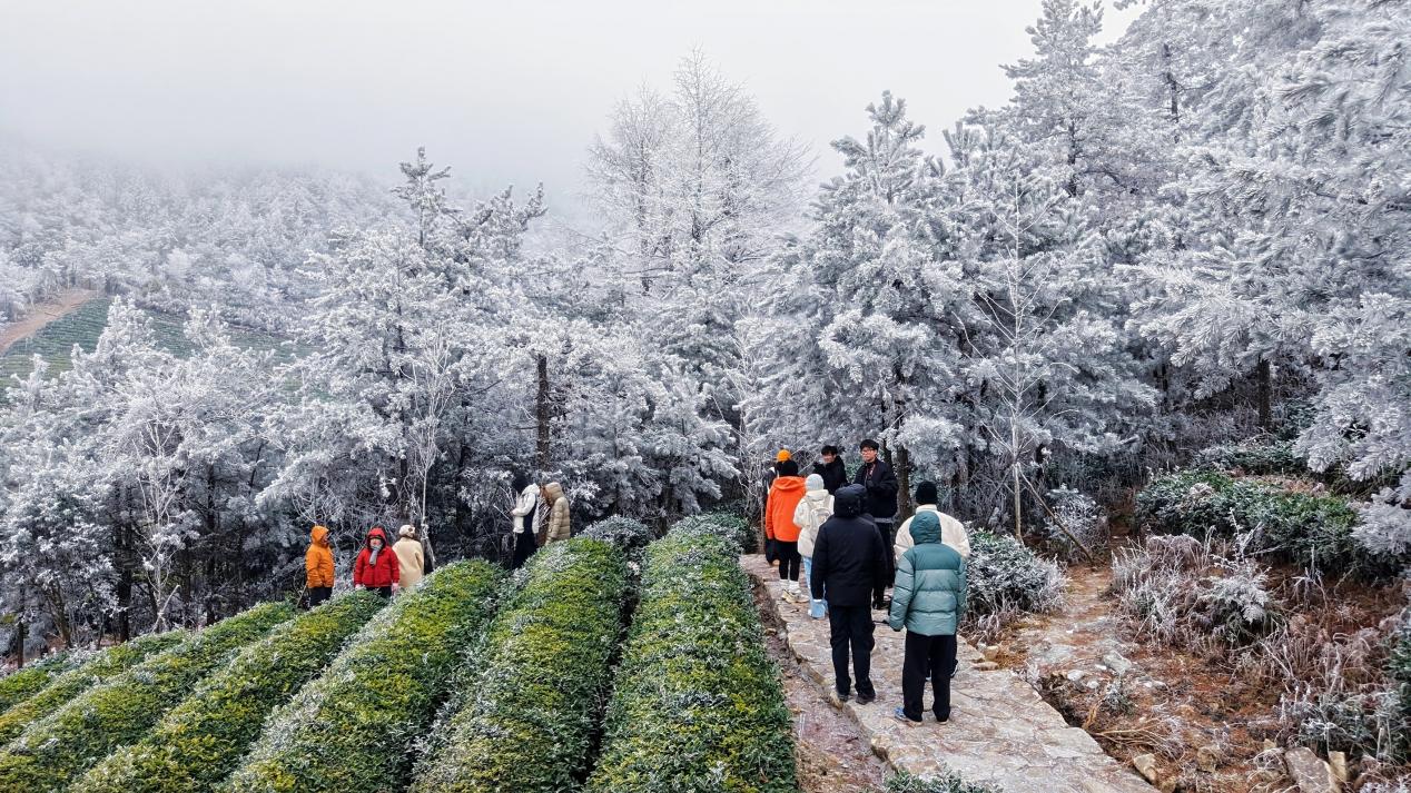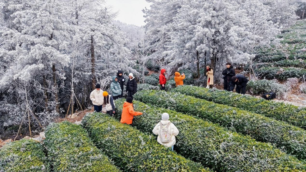 1月21日,位于浙江省温州市永嘉县的大寺基出现雾凇景观。高山之上,被雾凇包裹的树枝、草丛、果实,形态各异、晶莹剔透,在暖阳下折射出熠熠微光。这般难得的冬日盛景,吸引不少市民专程前来,举镜定格这冰雪画卷。(陈晓光 卢博/文 王哲孟/供图)