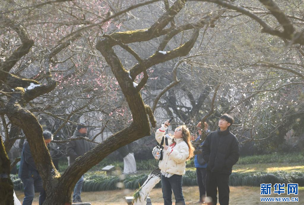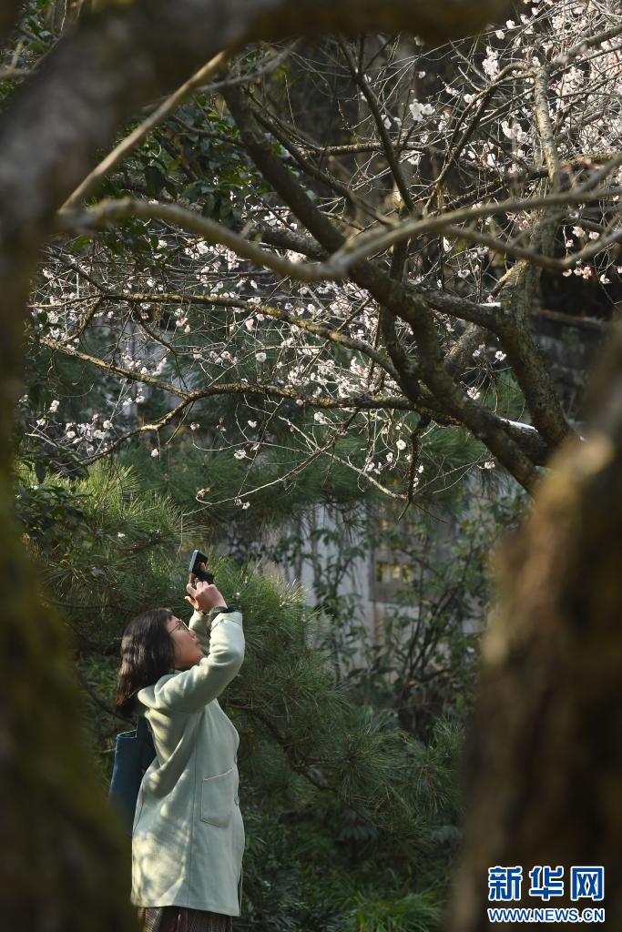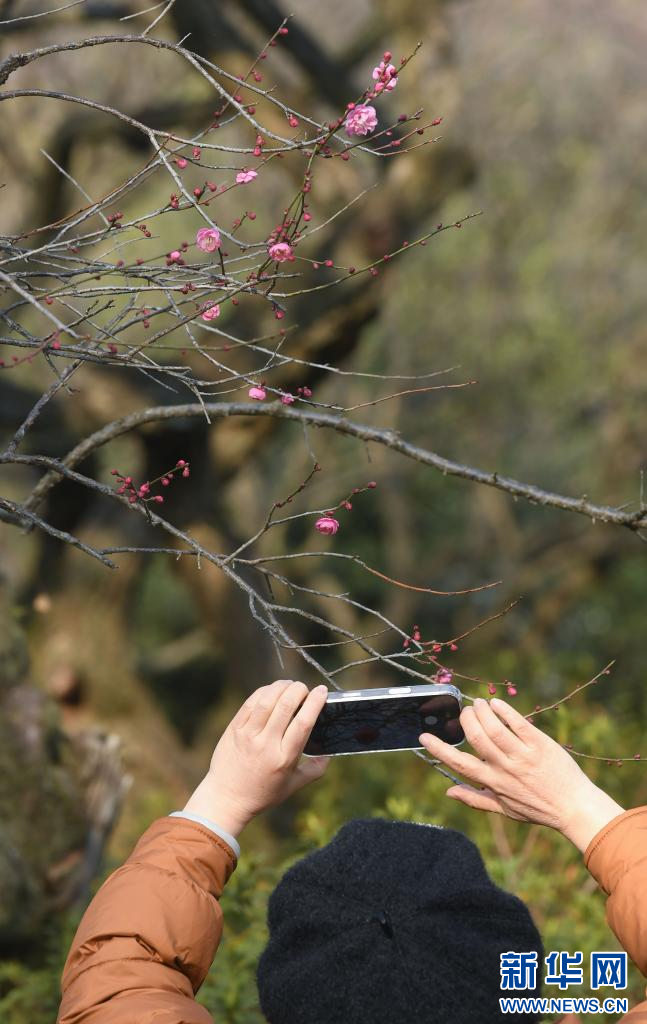 近日,浙江杭州灵峰探梅景区的梅花渐次进入花期,吸引游客前来观赏。灵峰探梅是杭州的赏梅胜地之一,栽植有梅树5000余株、100余个品种。新华社记者 翁忻旸 摄