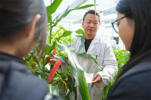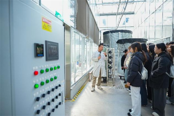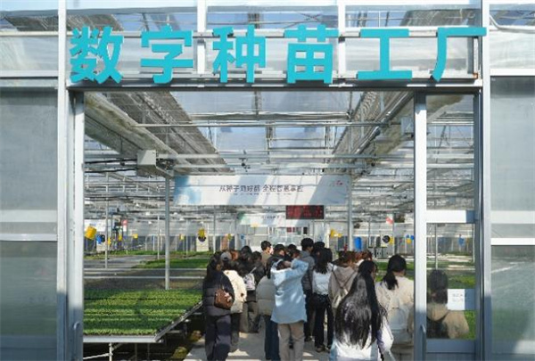实操练本领,AI拓新局。仪式结束后,学子们走进谢径安·传化植物科学中心,分组轮转进入育种科研温室、数字种苗工厂、品种试种温室,在专家的带领下开启沉浸式学习。生物育种专家系统介绍生物育种进化过程,演示人工授粉操作;栽培技术专家讲解种苗识别、病虫害判断及智能化育苗管理要点;设施技术专家介绍番茄生长特性,并现场操作智慧农业系统,演示如何通过智能传感器自动调节温室温湿度。