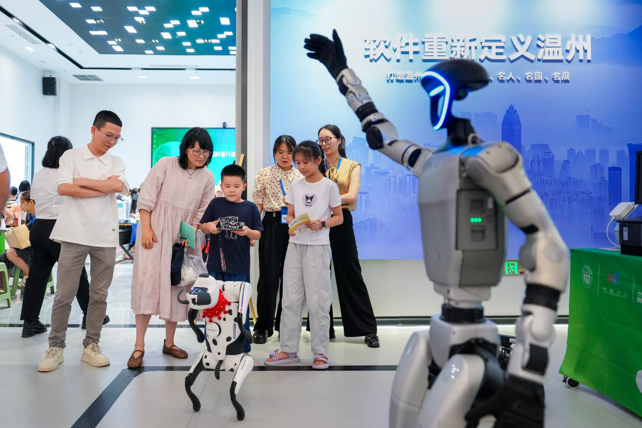市民在温州国际云软件谷体验人工智能技术。刘伟 摄