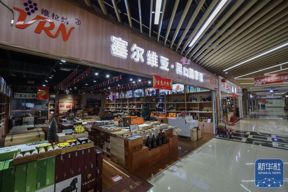 这是义乌中国进口商品城一家主营进口商品的店铺(1月30日摄)。