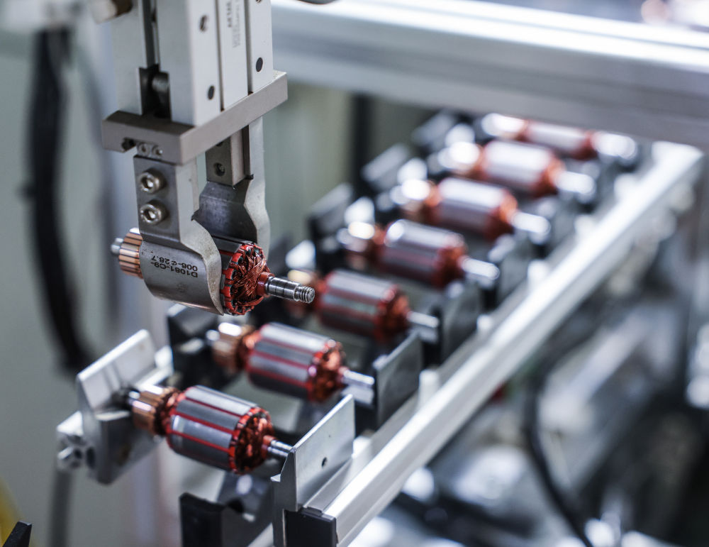 1月29日,在位于金华市金东区的金顺工具有限公司车间内,自动化流水线上在生产电机定子。该公司是一家从事喷枪、喷涂机等喷涂技术与产品研发、制造和销售的国家高新技术企业、国家专精特新“小巨人”企业,产品出口销往欧美97个国家和地区,授权专利197项。