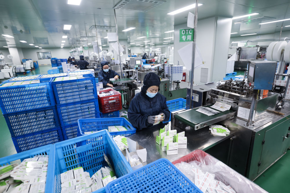 1月29日,在位于金华市金东区的景迪医疗用品有限公司车间内,流水线上在生产医疗用品。该公司主要产品为医用敷料、耗材,防疫防控、消杀产品等,主要销往国内市场及欧美、中东等海外市场,是国家高新技术企业。