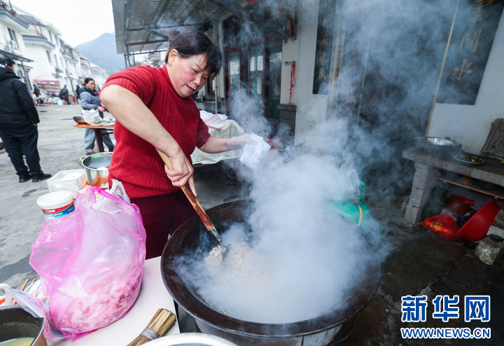 2月1日,莲花镇戴家村村民在为乡村百家宴烹制特色美食。