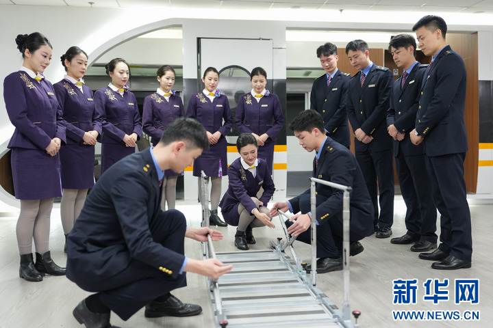 临近春运,中国铁路上海局集团有限公司杭州客运段组织动车组乘务人员开展春运专项培训及应急演练,护航旅客平安出行。