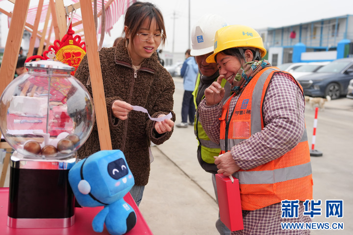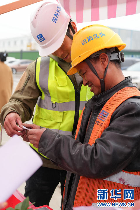 2月5日,浙江省杭州市钱塘区义蓬街道沙堤社区在中建四局江海商务中心项目工地旁开展迎新春主题活动,设置便民服务摊位,为建设者提供服务保障,传递节日关怀。