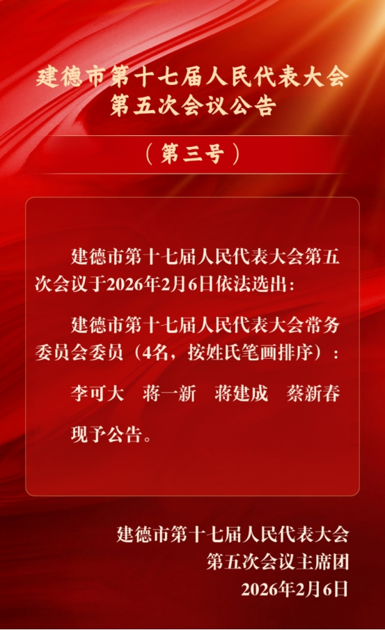 2月6日下午,建德市第十七届人民代表大会第五次会议举行第三次全体会议,进行大会选举。