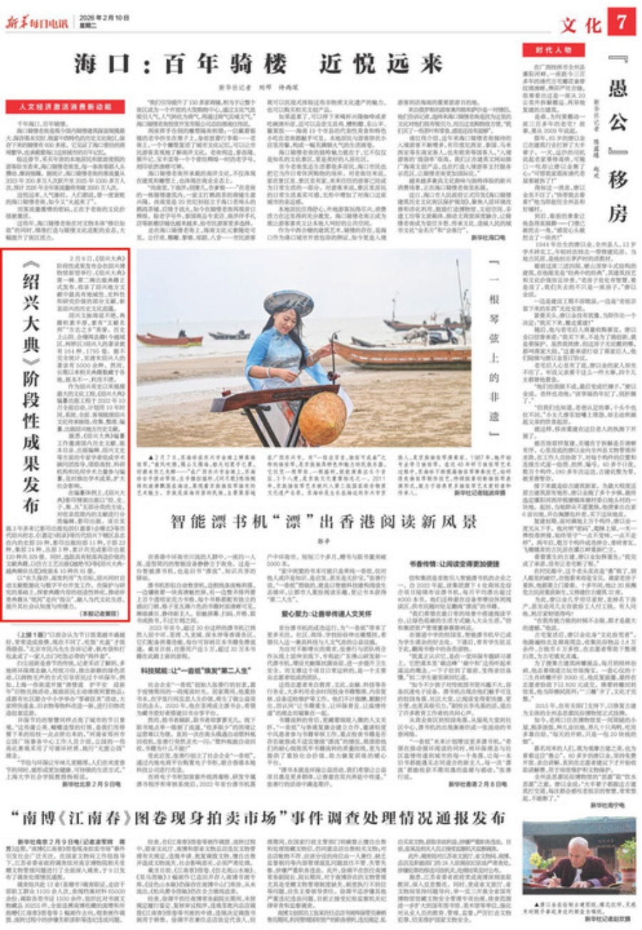 2月9日,《绍兴大典》阶段性成果发布会在绍兴博物馆新馆举行。《绍兴大典》第一辑、第二辑出版典籍正式发布,收录了绍兴地方文献中最具有地域性、史料性和研究价值的部分文献,彰显绍兴的历史文化底蕴。