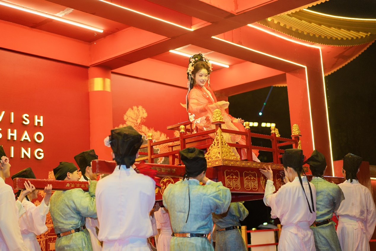 一场场新春文旅盛宴已在绍兴全域拉开序幕。作为系列活动的主核,2026“祝福·绍兴古城过大年”活动已于2月6日启幕,直至元宵。活动期间,古城化身为一个开放式的沉浸式剧场,带给游客层次丰富的活动体验:在城市广场,游客可以漫步于“宋韵瓦市”,与身着宋制华服的NPC互动对诗,或驻足欣赏“鱼龙百戏”舞台上的《绍兴有戏》等主题演艺,或跟随“花魁”队伍穿行于街巷,感受流动的风景;在迎恩门风情水街,“迎恩盛典·状元风华”活动则还原宋时新春体验;若想品尝地道年味,绍兴天地的马上开仓·年味风物集与城市广场的“光影寻味”烟火市集汇聚了全省风味与本土好物……夜幕降临后,“马踏繁花”等主题灯组将点亮古城,让游客的每一步都仿佛行走在诗词画卷之中。