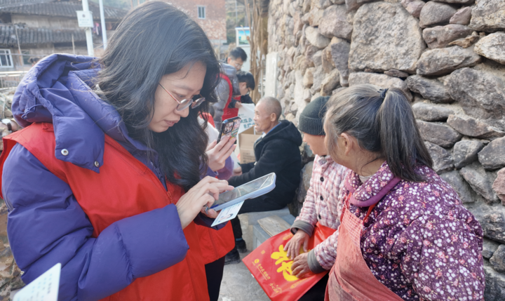“社保待遇认证、养老金申领、老年人优待证办理……这些业务大多需要人脸识别、在线操作,这些对城里居民而言是‘动动手指’的事,对他们就很难。”青田县政务办审批管理科负责人叶诚洁说,“这次是春节前来湖中村,我们特意为村民准备了新春礼包,包括春联、窗花等节庆用品,以及洗洁精、纸巾等生活用品。”