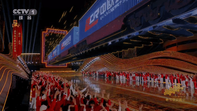 当中欧班列从全球数贸中心的“世界之窗”驰骋而出,拨浪鼓声中,演员成龙连线美国歌手里奇,与哈萨克斯坦、俄罗斯、匈牙利、法国、西班牙等中欧班列沿线5国艺术家齐唱山海和鸣的丝路欢歌。