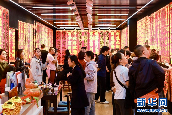 这种“无限可能”,在岁末年初的春节用品市场中体现得淋漓尽致。作为全球春节用品核心供应地,义乌占据全球80%以上的年画、对联市场份额。在商贸城内的和顺祥工艺礼品店铺,印有马来语、越南语、泰语等各式“新年快乐”字样的对联格外引人注目,仿佛一场跨文化的年味展览。