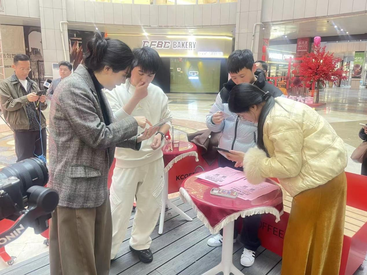 在春节假期中,工作人员共接听了近百个咨询电话,协助二十余名中奖客户注册数字人民币钱包,确保中奖资金高效直达市民手中。在浙北购物中心、潞村、吾悦广场、南浔古镇等举行的现场抽奖仪式中,工作人员携带易拉宝与宣传册,向客户普及数字人民币相关常识,帮助中奖市民通过数字人民币钱包快速完成领奖全流程。
