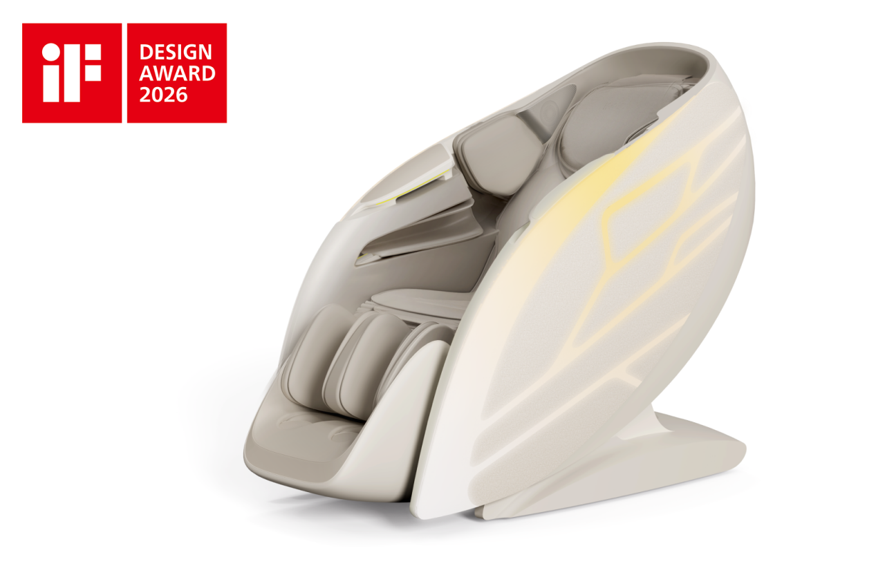 据介绍,此次获奖的V8Plus复芯号智能按摩椅,以生物共生设计理念为核心,聚焦高端休息区与公共过渡空间场景,将传统等候场景升级为沉浸式、个性化健康体验。产品从蝉翼精巧结构中汲取设计灵感,采用仿生茧式一体化造型,实现自然肌理与前沿科技的深度融合,在空间适配、外观美学、舒适体验与智能交互等方面实现全面突破。